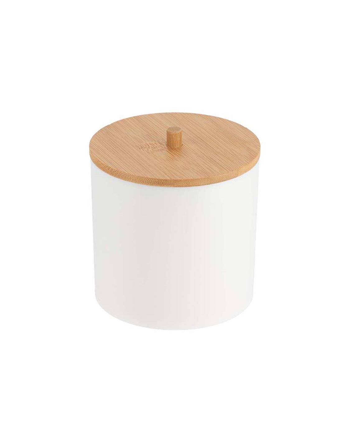 Δοχείο πλαστικό για βαμβάκι λευκό με bamboo