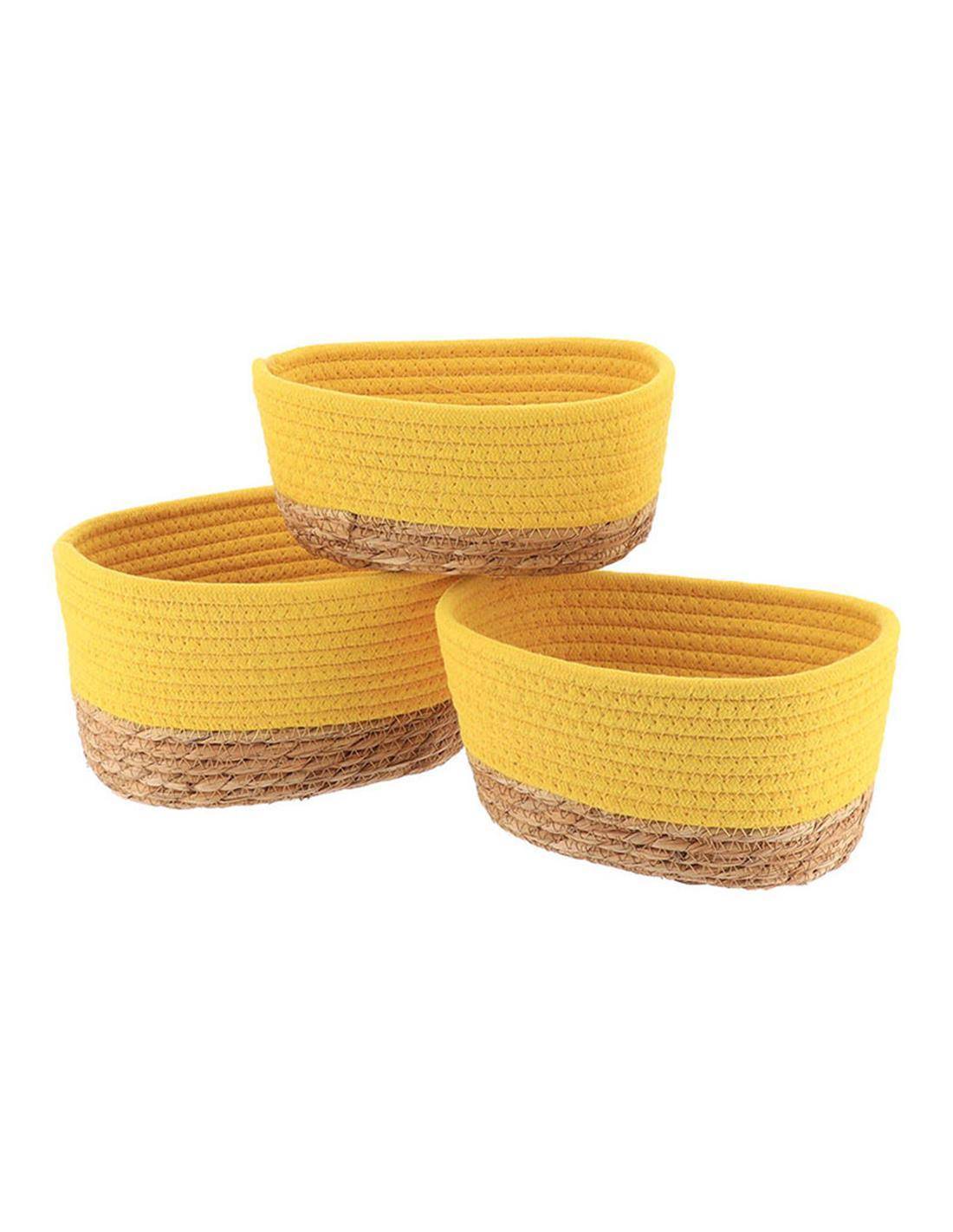 Καλάθι ψάθινο με βαμβ.κίτρινο  σ/3