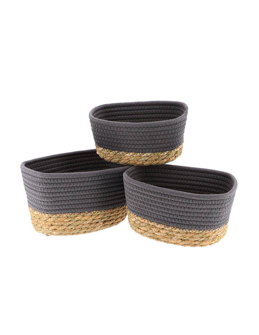 Καλάθι ψάθινο με βαμβ.Tahitian γκρι σ/3 (23Χ15Χ13,5+21Χ13Χ12+21Χ13Χ12)
