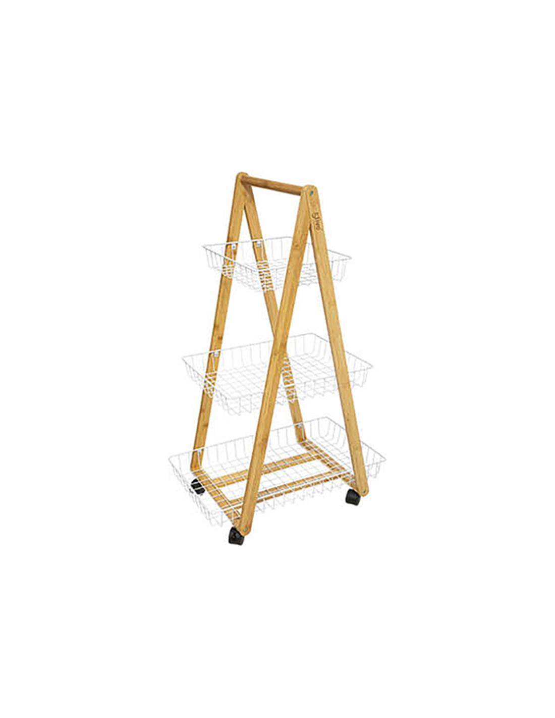 Ραφιέρα bamboo με 3 μεταλ.λευκά ράφια 88εκ.