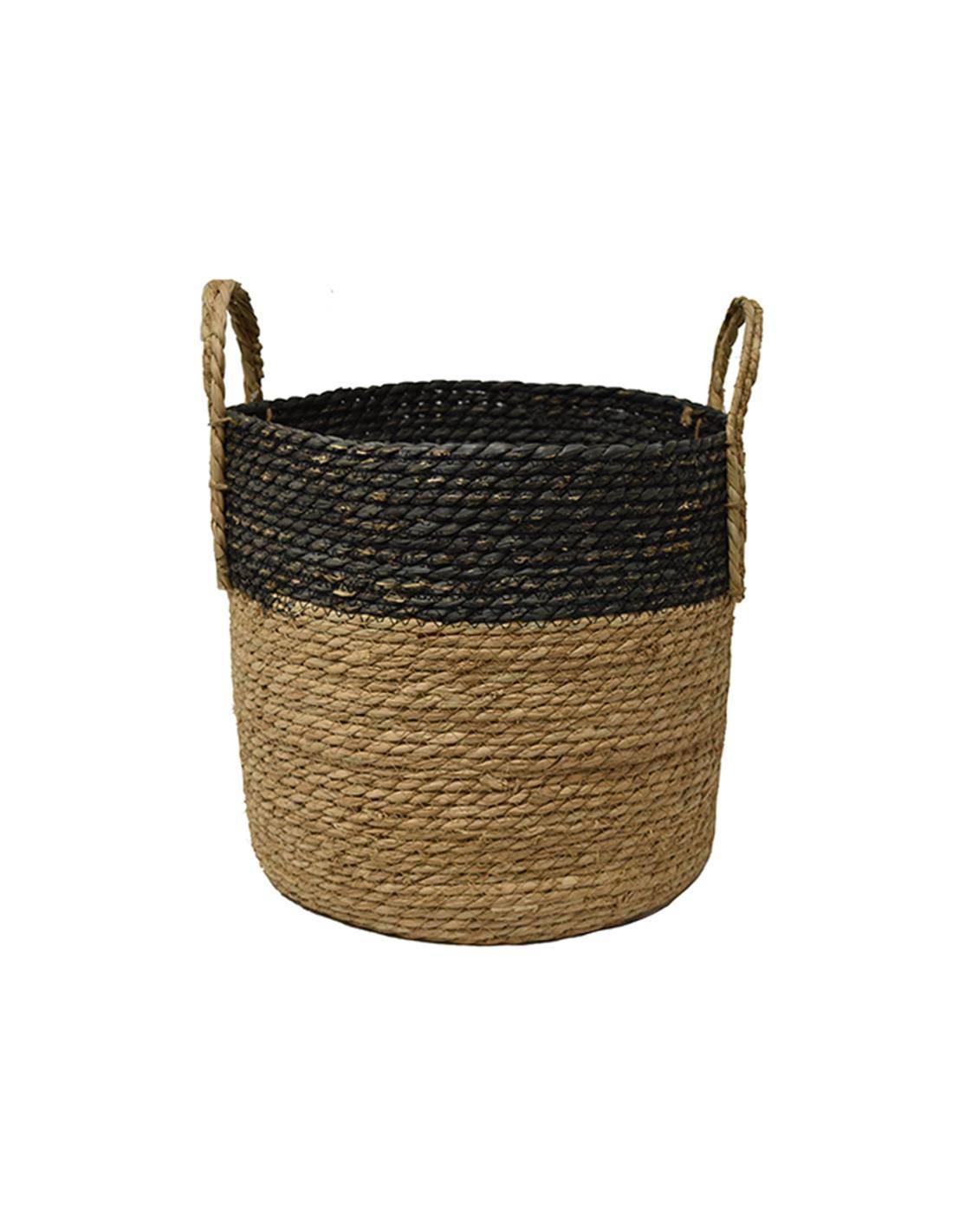 Καλάθι ψάθινο φυσικό με μαύρο τελείωμα Φ35Χ33