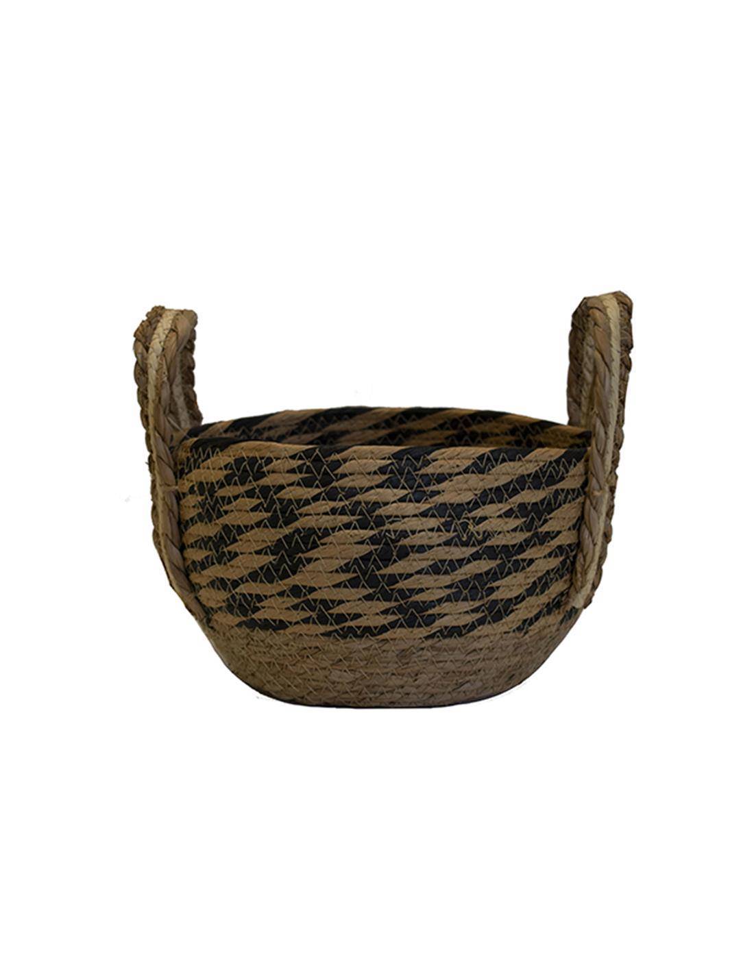 Καλάθι ψάθινο φυσικό με black rush φάσα Φ25Χ15