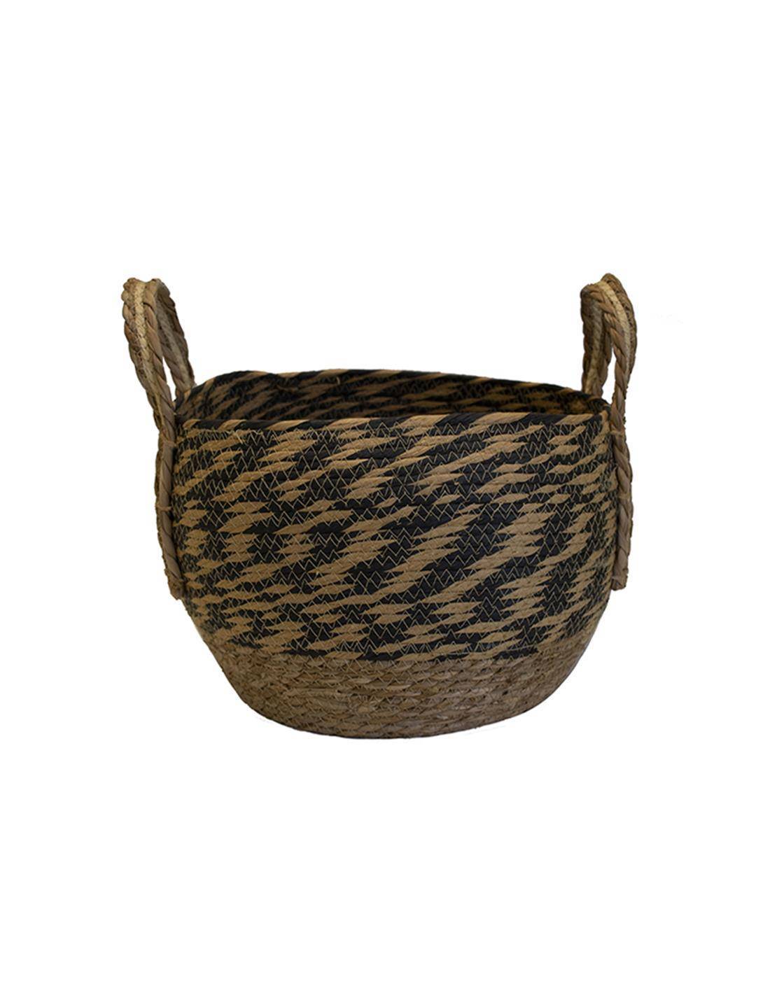 Καλάθι ψάθινο φυσικό με black rush φάσα Φ29Χ21