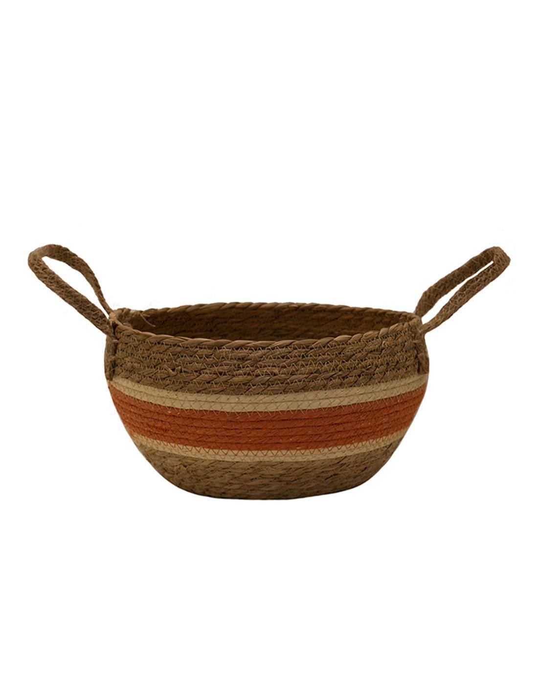 Καλάθι ψάθινο φυσικό με πορτοκαλί φάσα Φ28Χ17