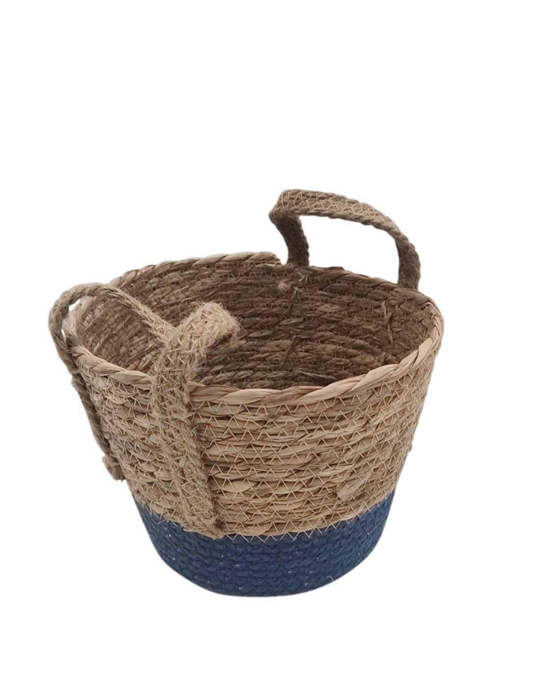 Καλάθι ψάθινο με βάση μπλε 21Χ16/23
