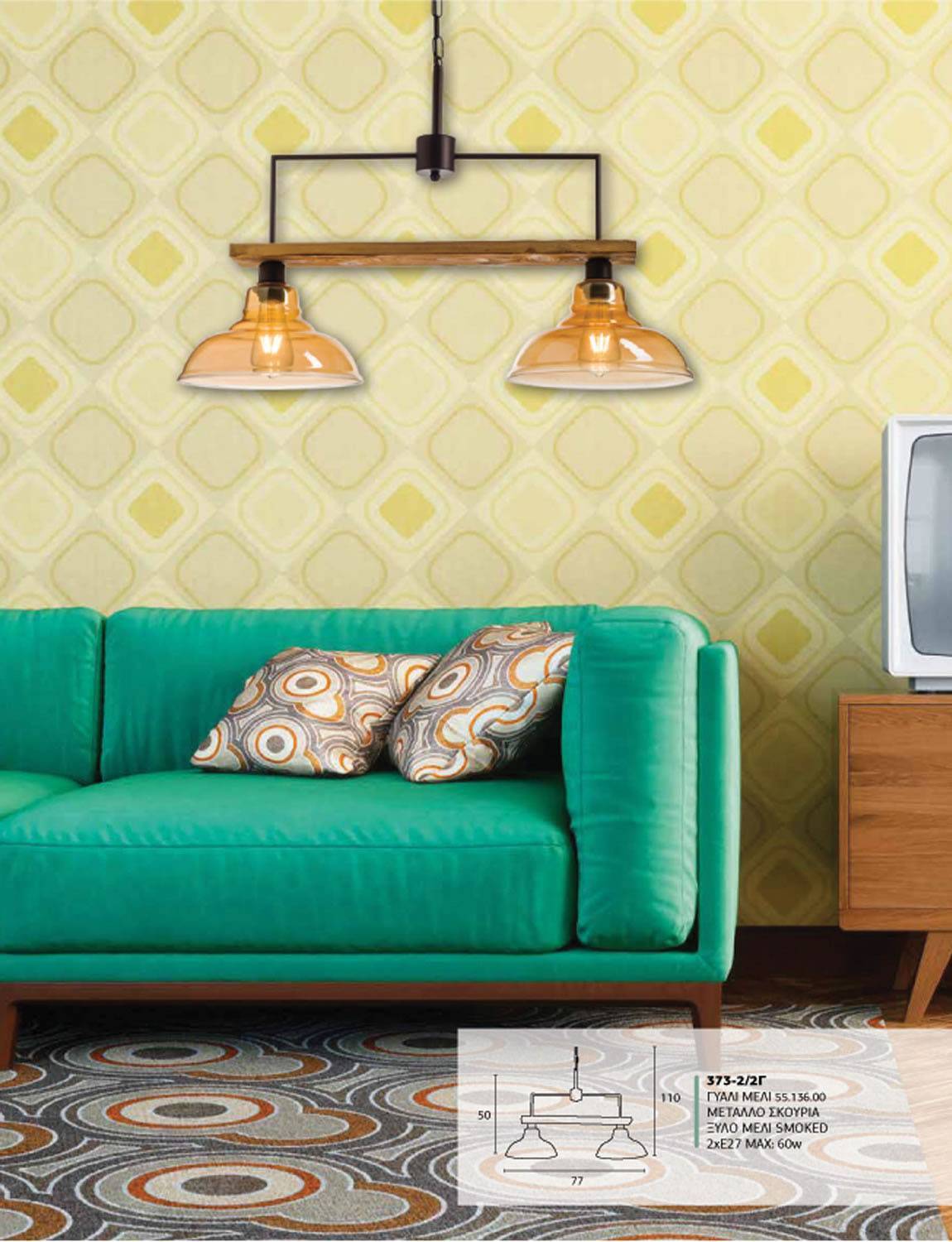 Φωτιστικό Πολύφωτο 2φ Ξύλο/Μέταλλο σκουριά/Γυαλί Ε27