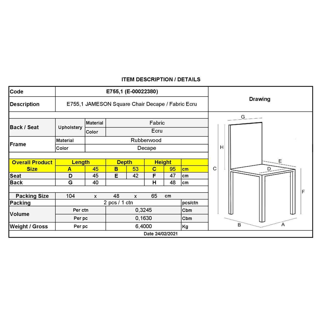 JAMESON Square Καρέκλα Τραπεζαρίας - Σαλονιού, Decape Ύφασμα Εκρού Ε-00022380 Ε755,1
