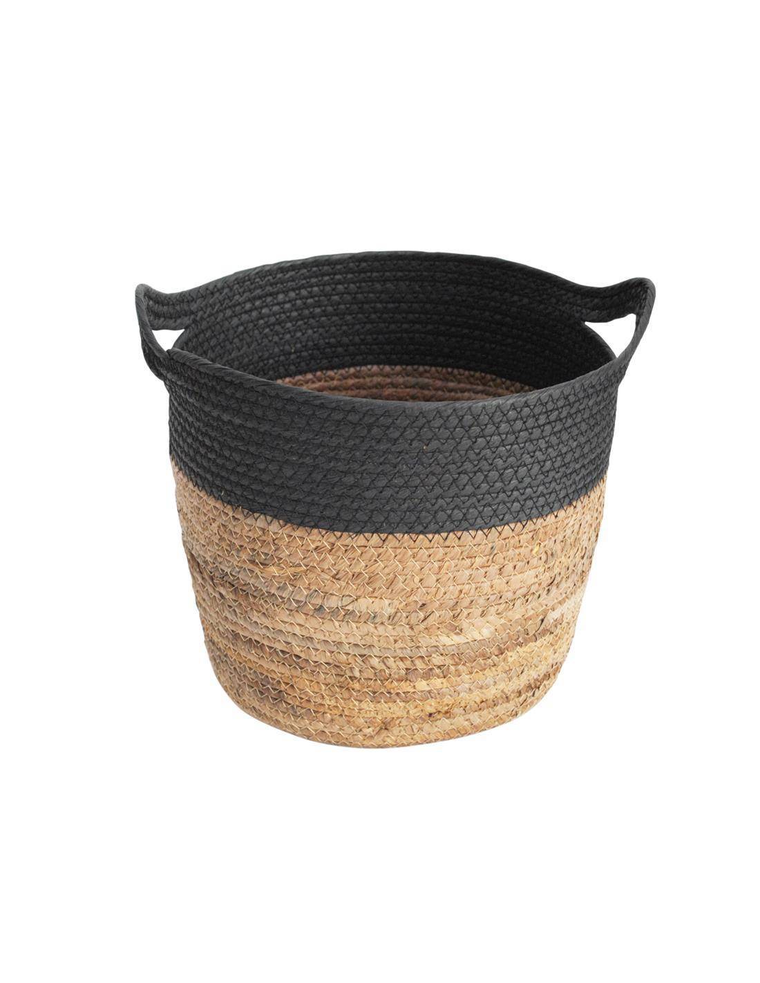 Καλάθι ψάθινο/φύλλο μπανανιάς φυσικό με μαύρη φάσα Φ31,5Η25,5/28,5CM