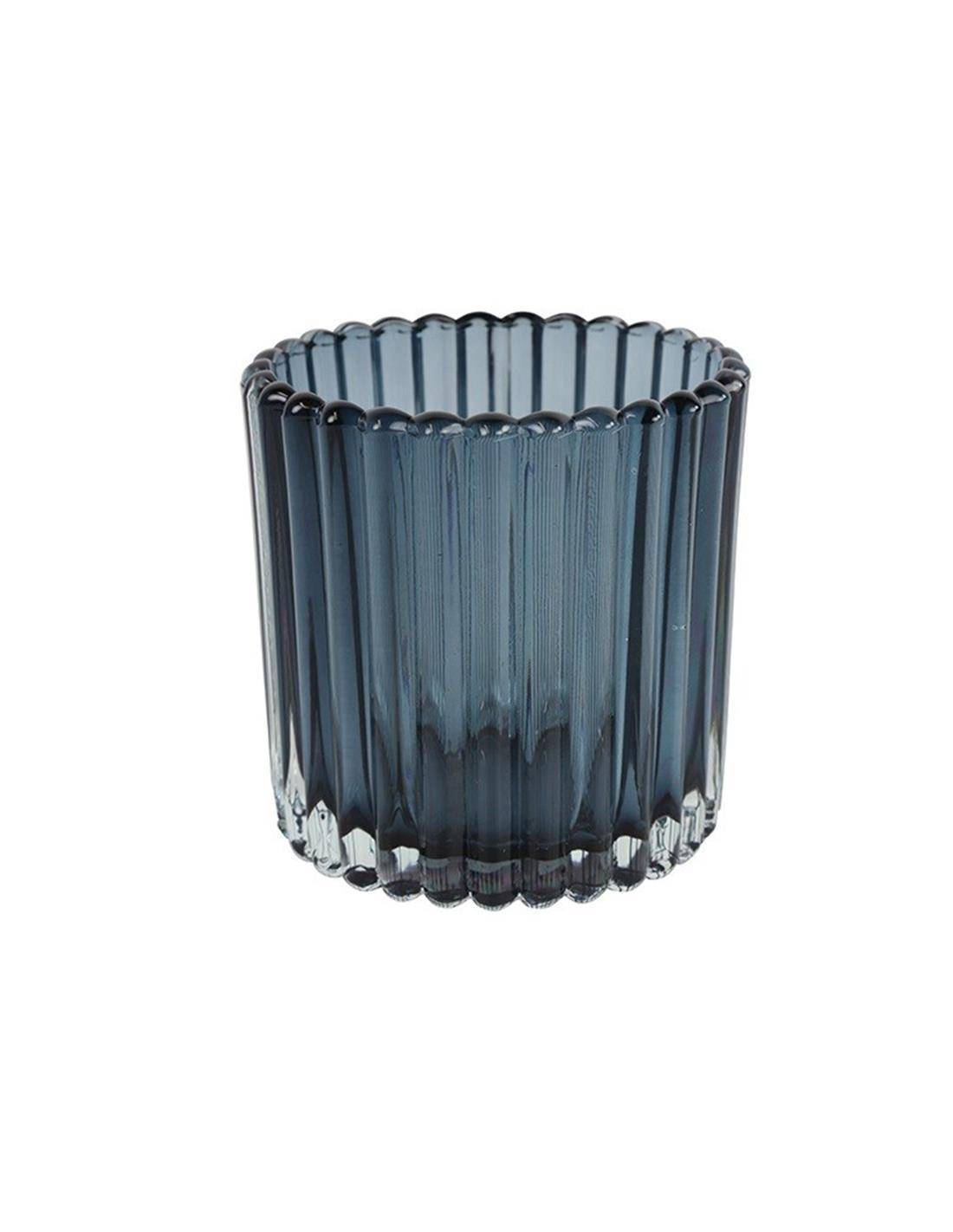Κηροπήγιο γυαλ.ποτήρι μπλε ριγωτό Φ9Η9cm