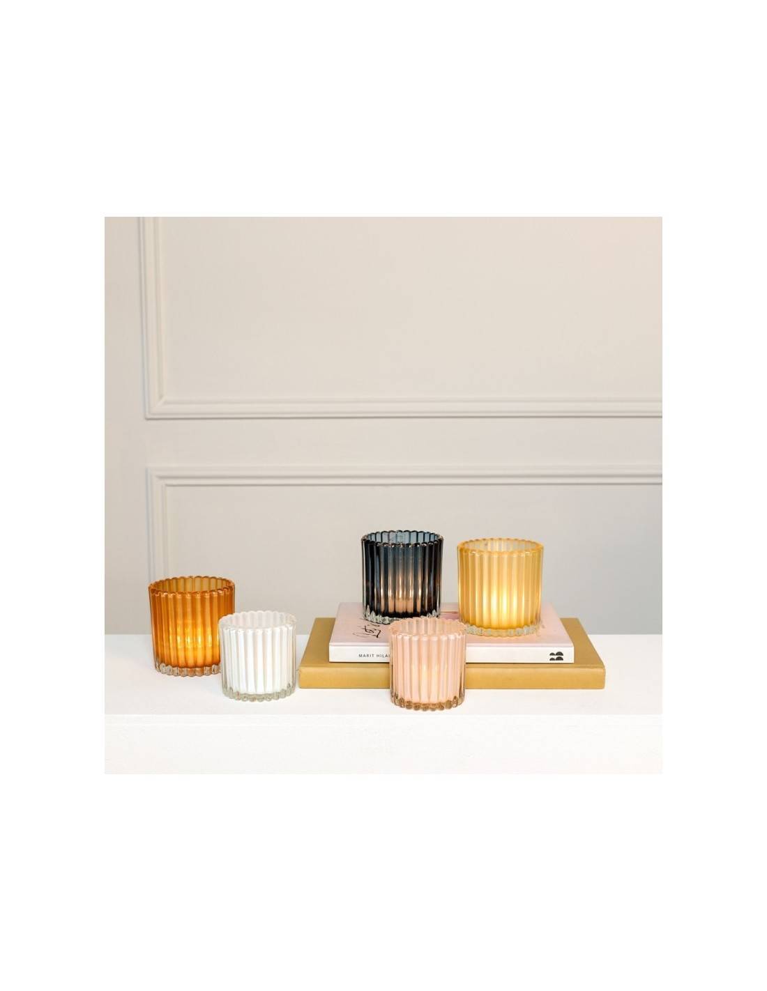 Κηροπήγιο γυαλ.ποτήρι καφέ ριγωτό Φ9Η9cm