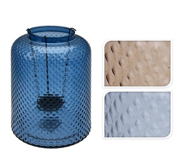 Γυάλινο φανάρι με μεταλ.βάση σε 3 χρ.,18x23cm HM427