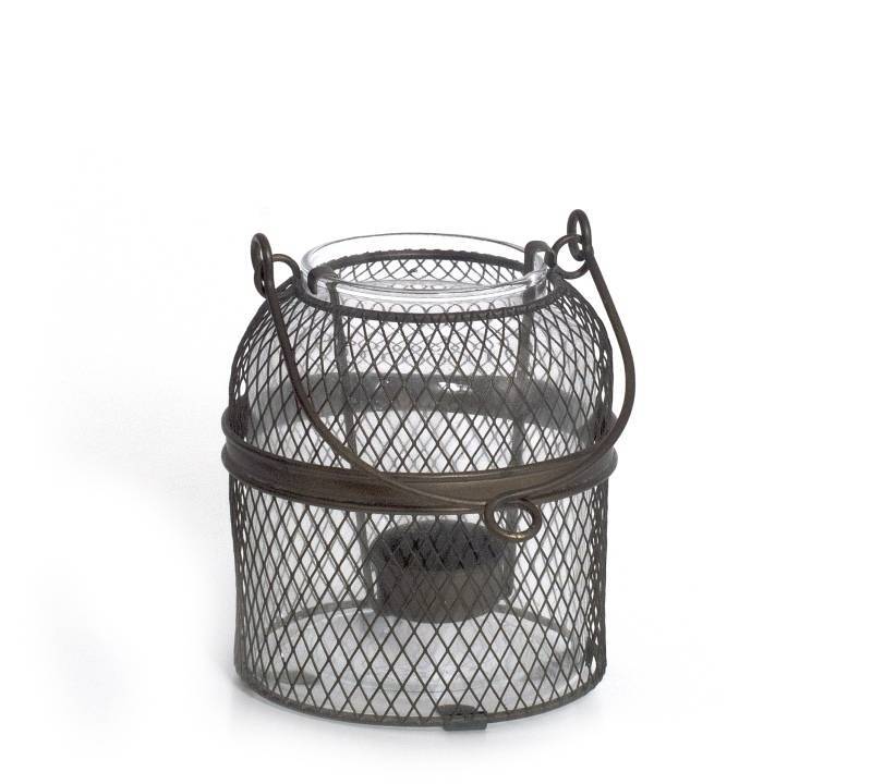Γυάλινο φανάρι με μεταλλικό πλέγμα, μπρονζέ χρ., 15cm HT428