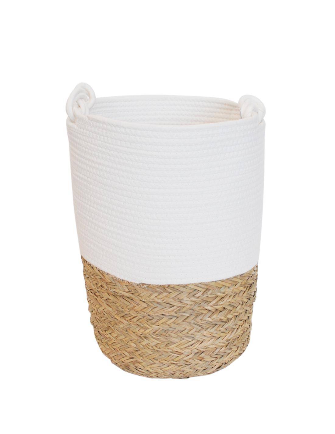 Καλάθι ψάθινο φυσικό βαμβ.λευκό Φ31Η43cm