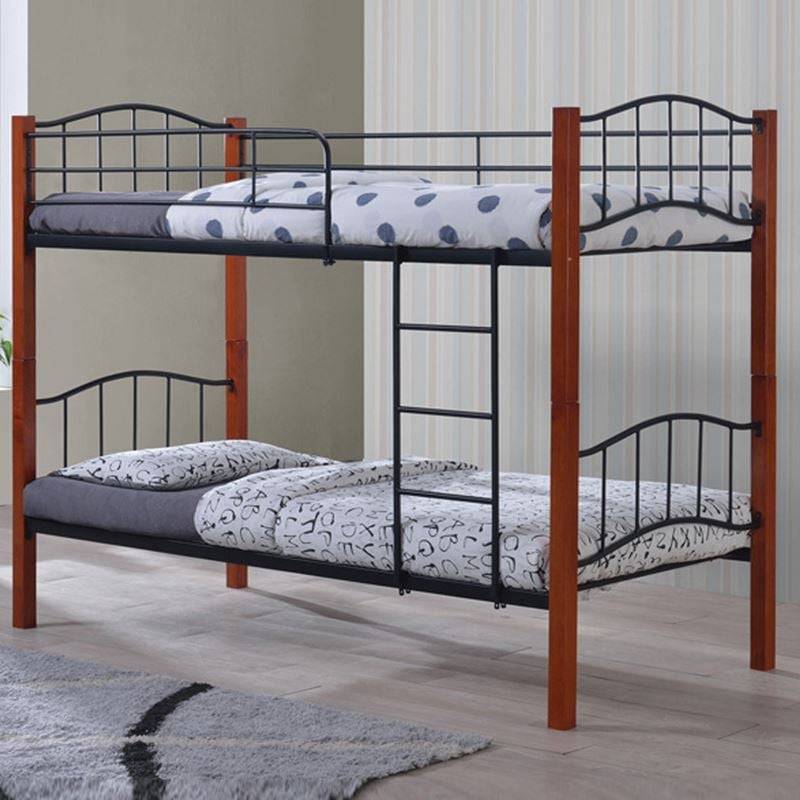 PALOMA Κρεβάτι Κουκέτα Μέταλλο Βαφή Μαύρο, Ξύλο Καρυδί Ε-00016133 Ε8047