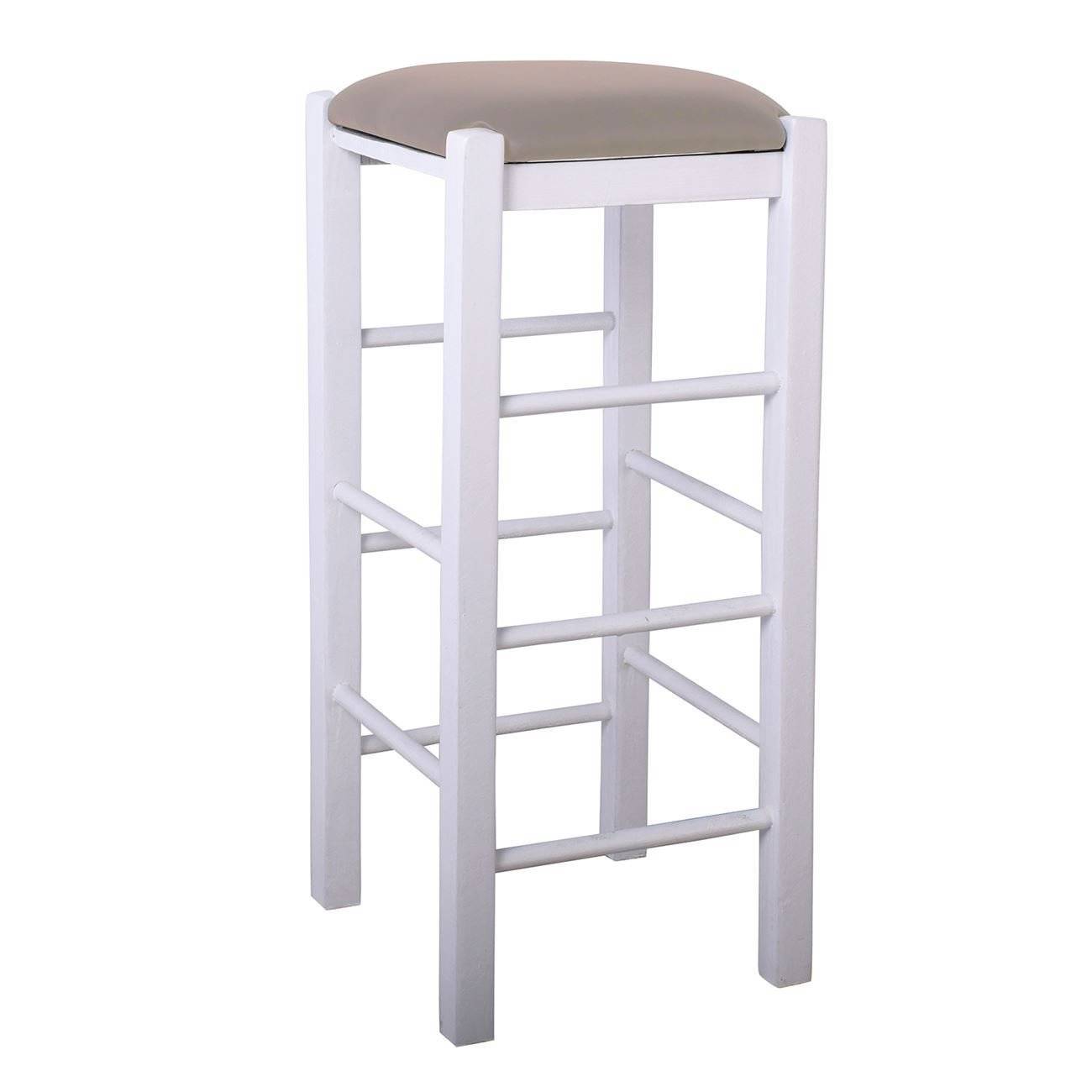 ΤΑΒΕΡΝΑΣ Σκαμπό BAR, Οξιά Βαφή Εμποτισμός Λάκα Άσπρο, Κάθισμα Pu Cappuccino Ρ-00024768 Ρ977,Ε8Τ1