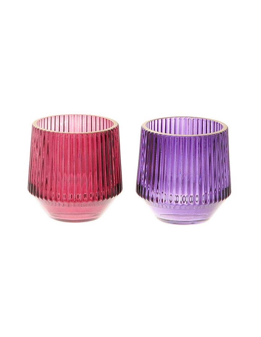 Κηροπήγιο γυαλ. Ριγέ 2χρ. Φ7,9Η7,5cm