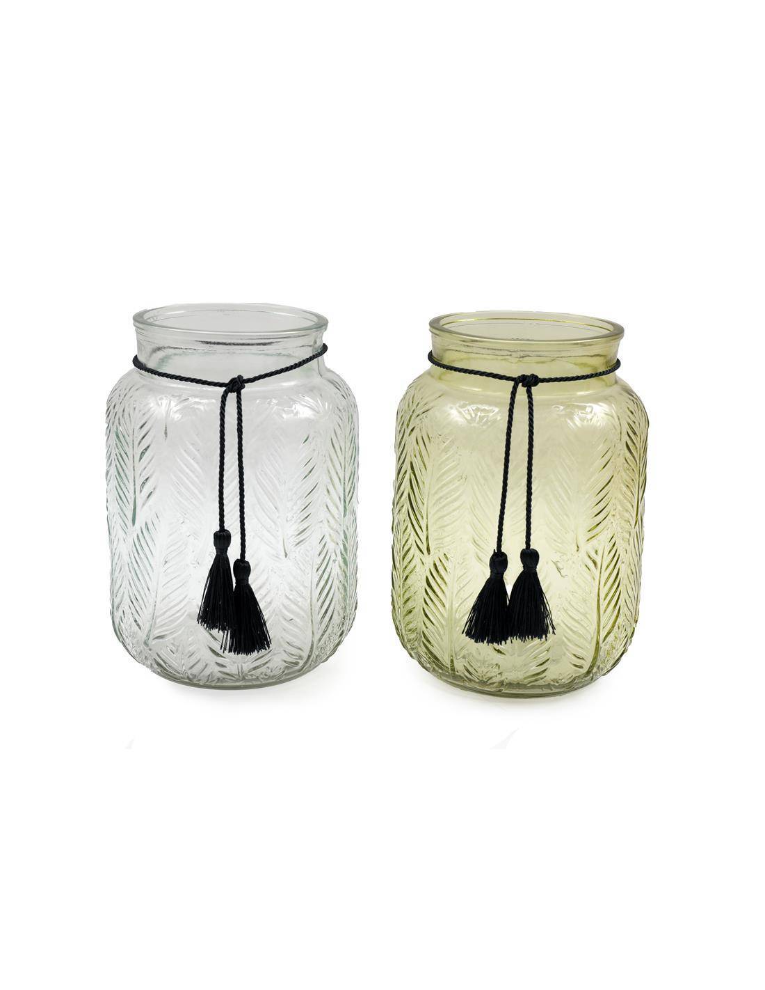 Κηροπήγιο γυάλινο με φούντες/2χρώματα Φ14,5x20,5cm