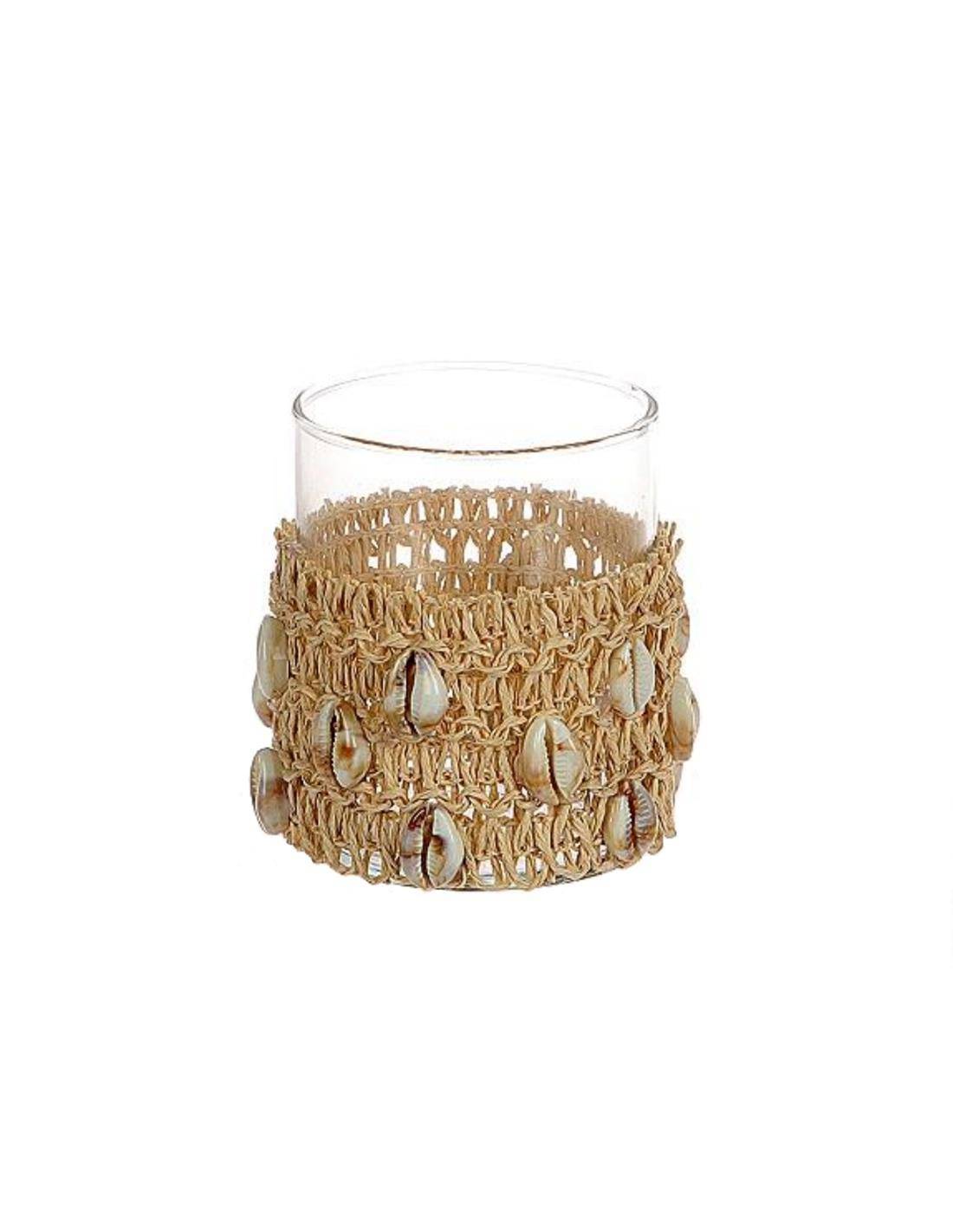 Κηροπήγιο γυάλινο με δίχτυ&κοχύλια Φ8Η10cm
