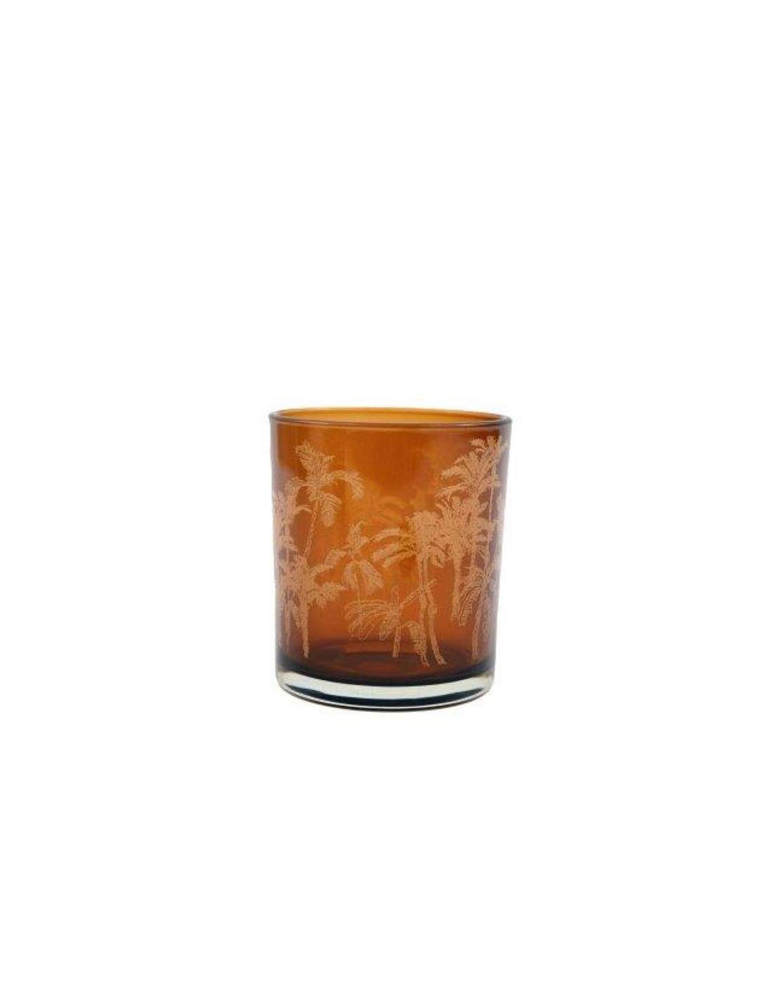 Κηροπήγιο γυαλ.καφέ φοίνικες 8x10cm
