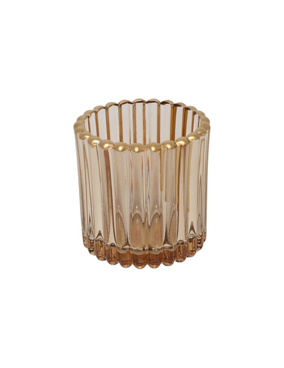 Κηροπήγιο γυαλ.καφέ χρυσό rim Φ7Χ7,5