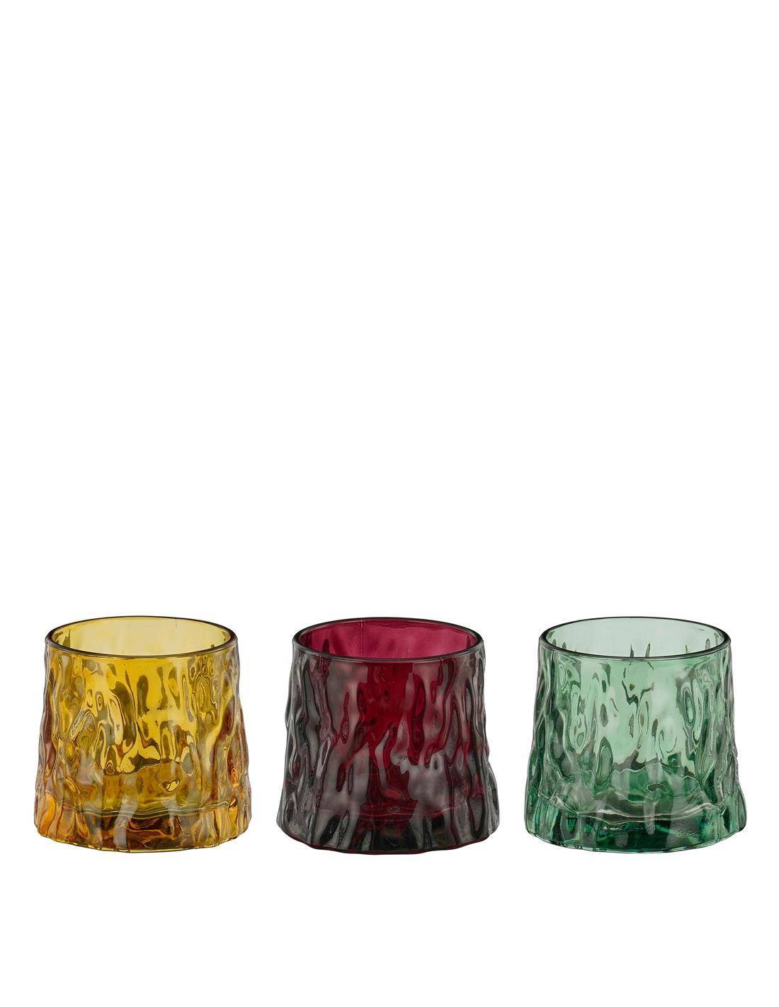 Κηροπήγιο γυάλινο 3χρώματα Φ8Η7cm